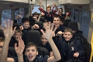 Pictured left: Year 7 boys returning from their 3-0 victory against Dyson Perrins Academy – hands up who wants to go to ESFA Round 3!